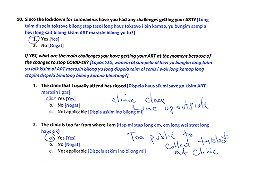 The survey enables UNAIDS and partners to assess the needs of persons living with HIV/AIDS and persons with tuberculosis to ensure safe access to medication and healthcare services. It will aid advocacy for improved training and messaging for service providers.