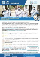 The United Nations Volunteers (UNV) programme is geared to support UN partners in Asia and the Pacific in ensuring fair and equitable access to COVID-19 vaccines (COVAX). UN Volunteers for COVAX can support UN entities in ensuring the efficient, safe and equitable distribution of COVAX, as well as provide accurate and verified information about COVID-19.