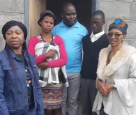 From left: UNDP Deputy Resident Representative, Ms. Christy Ahenkora, Ms. Malefu Ts’osane, a beneficiary of the volunteer housing project, Mr. Ambrose Toolit, UNV Programme officer for Lesotho and South Africa, Lehlohonolo Ts’osane, Ms.Ts’osane son and Dr Mahali Phamotse, Lesotho's Minister of Gender, Youth, Sports and Recreation in front of the newly build house.