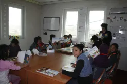 UNDP jointly supported UNV by further donating the long awaited desks, chairs, bookshelves and a fridge. Within three weeks, the empty apartment was magically transformed. As one child said, finally we have our own school! Now the children are seated at their desks on the colourful donated chairs and, with their new sets of books and stationery, they can finally get down to learning and doing their homework.