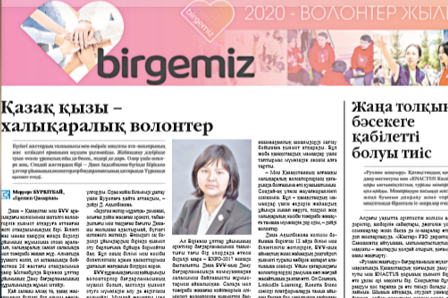 Recently the national front-office of volunteers “Birgemiz” has invited Dina to discuss with her the nitty-gritty of volunteering. Her experience will undoubtedly be of interest to the readers. We hope that Dina’s achievements will be an inspiration to those interested in volunteering.