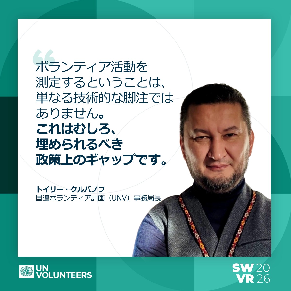 こうした洞察は、まさに重要な転換点にあります。国連総会は2026年を「持続可能な開発のためのボランティア国際年」と定めました。多くの政府、市民社会組織、民間セクターが、この年を機にボランティア活動を促進する環境の改善や、その価値を測定し可視化するための仕組みへの投資を進めています。同時に、国連ボランティア計画(UNV)は、世界各地のコミュニティや国から生まれる知見や革新を共有し、それらが国際的な基準の形成に生かされるよう支援しています。