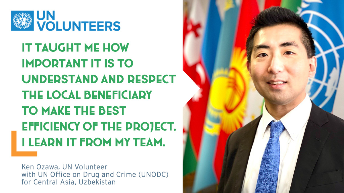 Ken Ozawa (Japan) is a UN Volunteer with the United Nations Office on Drugs and Crime (UNODC) for Central Asia, in Uzbekistan. His assignment, as part of a Japan-funded programme on regional cross-border cooperation, is focused on countering transnational organized crime, illicit drug trafficking and terrorism.