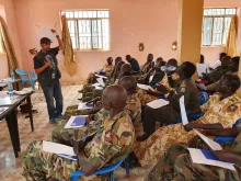 Shree Adhikari, UN Volunteer Human Rights Officer with UNMISS, gives a training to security agencies on peace, human rights and the rights of civilians in Cuiebet, Gok State, South Sudan.