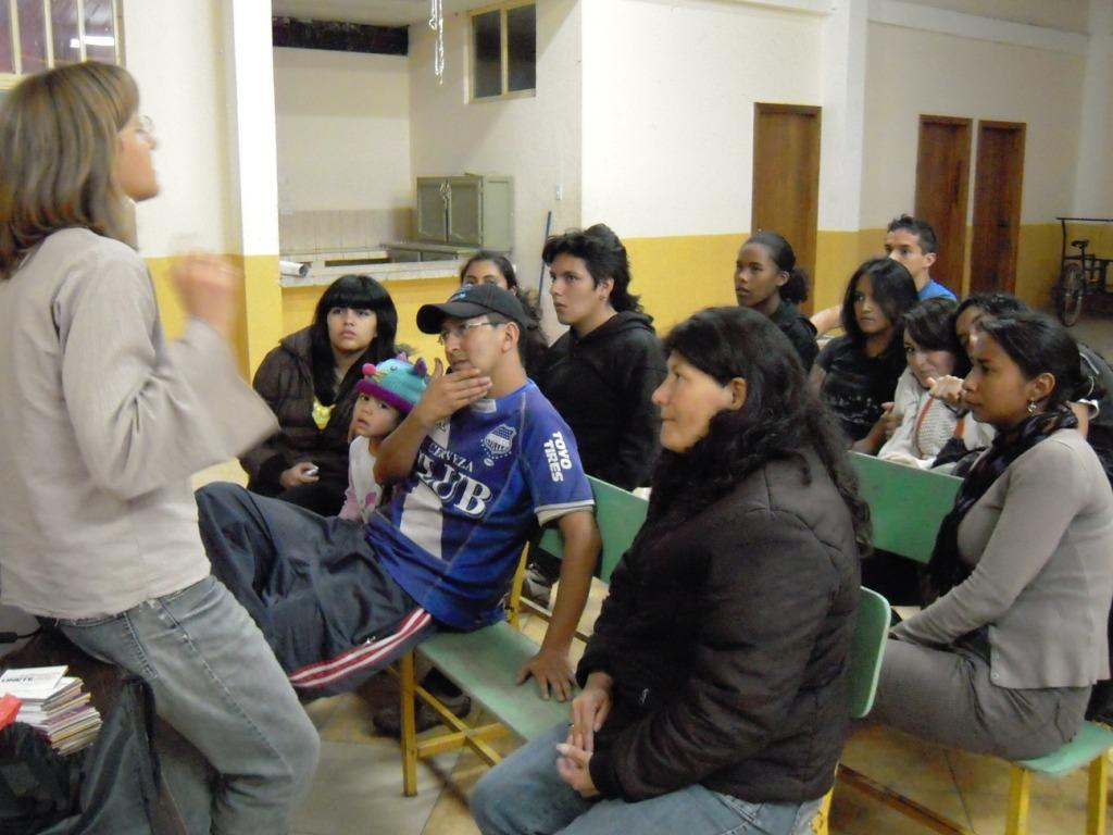 Con esa intención, convoqué al grupo juvenil La Hueca de Carcelén Bajo, barrio del norte de Quito, y nos reunimos en enero en la Casa Comunal del mismo barrio para realizar un cine debate sobre el tema de la violencia contra las mujeres. Doce jóvenes, entre ellos cinco chicos y siete chicas, participaron activamente en el evento.