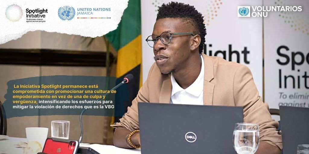 Le preguntamos a Stefan, "¿Cómo vives esta experiencia de Voluntariado ONU en la Iniciativa Spotlight siendo hombre?”, a lo que nos respondió “Crecí en un casa monoparental junto a mi madre, por lo que siempre abogué por las mujeres. Siendo hombre y viviendo en Jamaica, puedo asegurar que la masculinidad tóxica es una norma social destructiva. Desde jóvenes, algunos hombres no reciben educación sobre cómo expresar los sentimientos de manera sana, y entienden la violencia de género como algo normal. Mi objetivo dentro de la Iniciativa Spotlight es concientizar a hombres y niños en que son parte de la solución para terminar con la violencia basada en género en nuestra sociedad.”