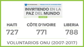 En los próximos meses llegarán a su fin tres de las misiones más largas de mantenimiento de la paz de las Naciones Unidas: ONUCI en Côte d’Ivoire, MINUSTAH en Haití y UNMIL en Liberia. El programa VNU y nuestros Voluntarios de la ONU han hecho aportaciones tangibles tanto a éstas como a muchas otras misiones. ONUCI, por ejemplo, acogió en los últimos diez años 771 Voluntarios ONU, personas dedicadas que prestaron servicio como oficiales de asuntos jurídicos y civiles, especialistas en control de movimientos y logística, expertos en alimentación y nutrición, oficiales de derechos humanos, ingenieros y médicos.