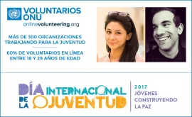 A pesar de ser uno de los grupos de población más vulnerables en épocas de conflicto, la energía inagotable de los jóvenes se puede canalizar para satisfacer las necesidades planteadas por antagonismos complejos y ayudar a sus sociedades a prosperar y superar las cargas del derramamiento de sangre y la pobreza. Abogando por la solidaridad global y la cooperación multilateral, así como fomentando la idea de que nadie debería quedar a la zaga, el programa VNU y su extensa red de voluntarios en línea implica, de manera activa, a jóvenes en varias iniciativas de desarrollo.