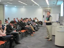 The first meeting held for NGO partners. The Instructor of the Despertar NGO is talking to other NGOs about best practices in teaching IT Essentials to underserved young people in S?o Paulo. (UNV, August 2011)