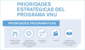 Los Programas mundiales del programa VNU se crearon en 2015 y se concentran en cinco áreas prioritarias. Estos programas contribuyen al avance de los países, a consolidar la paz y a acelerar el progreso del desarrollo.