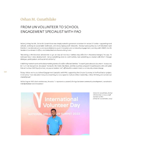 110 Today, Oshan works as a School Engagement Specialist with FAO, supporting the Circular Economy in the Food Sector project,