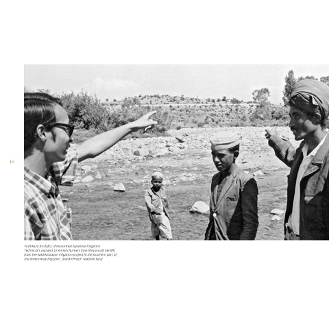 10 Yoshikazu Ito (left), UN Volunteer Japanese Irrigation Technician, explains to Yemeni farmers how they would benefit from the Wadi Warazan irrigation project in the southern part of the Yemen Arab Republic. [UN Archive/F. Mattioli,1972]