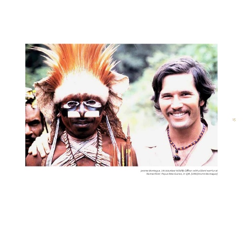 15 Jerome Montague, UN Volunteer Wildlife Officer, with a Biami warrior at Nomad River, Papua New Guinea, in 1978. [UNV/Jerome Montague]