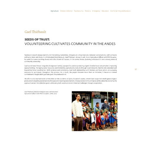 willing to listen and share. A UN Volunteer from Belgium, Gael Thiébault, knows it well. As an Agriculture Officer with FAO Ecuador,