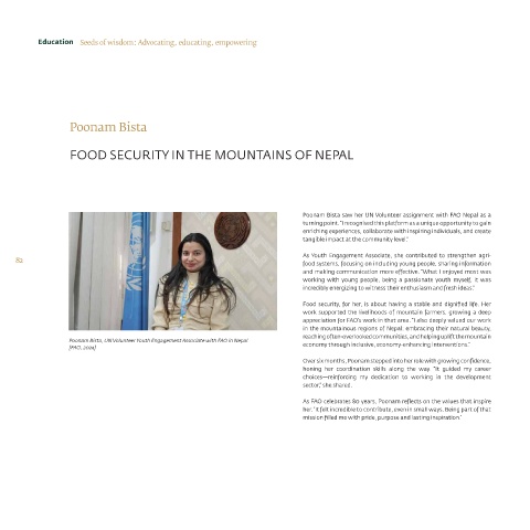 Poonam Bista, UN Volunteer Youth Engagement Associate with FAO in Nepal. economy through inclusive, economy-enhancing interventions.”