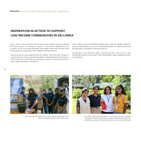 Colombo. As UN Community Volunteers, they helped community members grow kits, food packs, and maternity and menstrual kits.