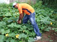 Le Volontaire des Nations Unies Dinesh Weerakoon travaille dans le potager qu'il entretient à l'extérieur de son bureau à Lubumbashi. Photo: D. Weerakoon