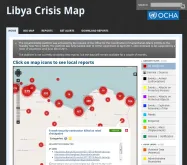 The online Libya Crisis Map was created by online volunteers in March 2011 at the request of OCHA. It displayed live online information relevant to humanitarian relief efforts in Libya. (OCHA/2011)