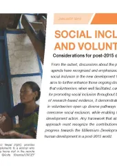 Les discussions sur le programme de développement pour laprès-2015 ont reconnu et souligné limportance centrale de linclusion sociale dans le nouveau cadre de développement. Se fondant sur des données scientifiques, cette fiche thématique apporte la preuve que, lorsquil est facilité, le volontariat peut, partout dans le monde, se transformer en mécanisme puissant dinclusion sociale. Tout cadre de développement visant à renverser lapproche directive du sommet vers la base doit prendre en considération les contributions du volontariat aux progrès faits en faveur des OMD et du développement humain durable dans le contexte de laprès-2015.
