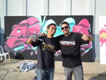 UN Volunteer Ramiro Barriga (right) with Gerso, a graffiti artist from Mexico, during the project ?Hip-Hop for Guatemala?. (UNV, 2011)
