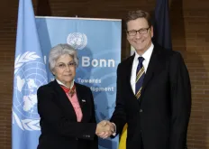 The German Foreign Minister, Mr Guido Westerwelle, visited the UN campus in Bonn today. He was welcomed by the Chair of the Consultative Forum of the Heads of UN Agencies in Germany, Ms Flavia Pansieri, together with the heads of the United Nations agencies in Bonn. The Minister asserted the commitment of Germany to the UN agencies in Bonn and their work on sustainable development.