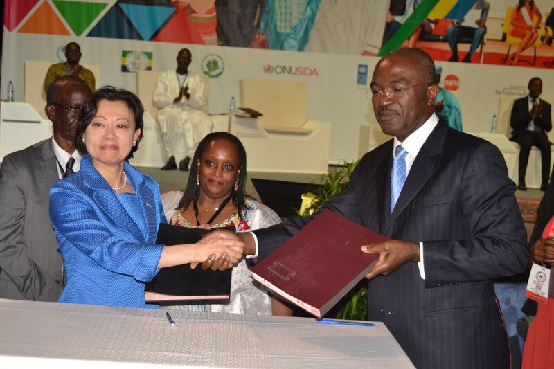 On the occasion of the 5th Summit of Pan-African UN Youth Leaders in Libreville, the Minister of Youth and Sports of Gabon, Blaise Louembe, and the Chief of Partnerships and Communications Division of UNV, Kazumi Ikeda-Larhed, signed an agreement for the implementation of a project that will support the establishment of a Youth Volunteer Corps in the country.