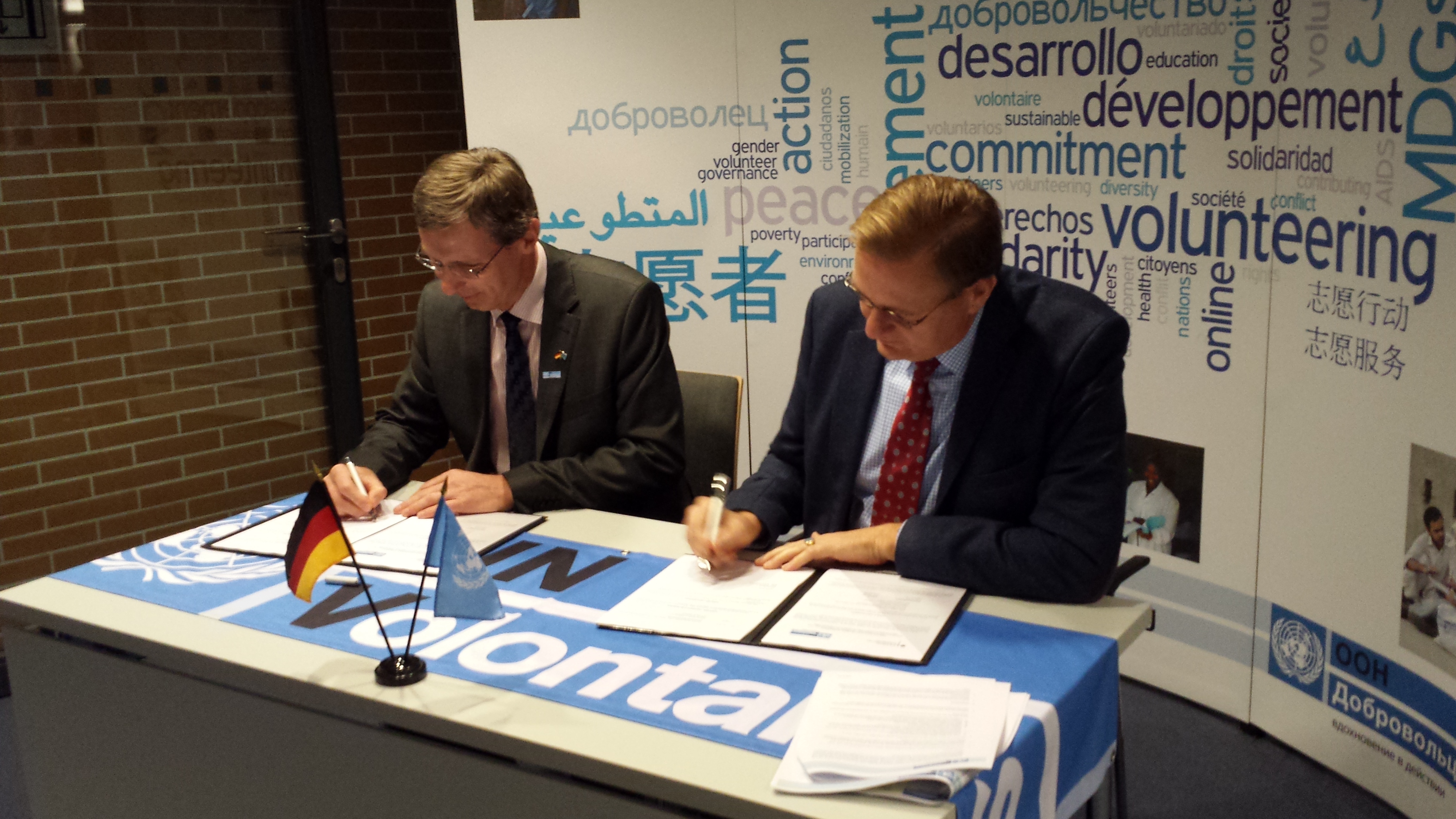 Mr Dictus and Dr Koppers announced Germanys support to two UNV interventions during the period 2015-2017. The first initiative is in support of UNVs Online Volunteering service, a global multi-stakeholder partnership for sustainable development. This service connects volunteers with organizations working for sustainable human development via the internet. With the support from Germany, the global reach of the Online Volunteering service will be expanded and innovative methods explored to ensure the broadest possible participation by all members of society, including the private sector.