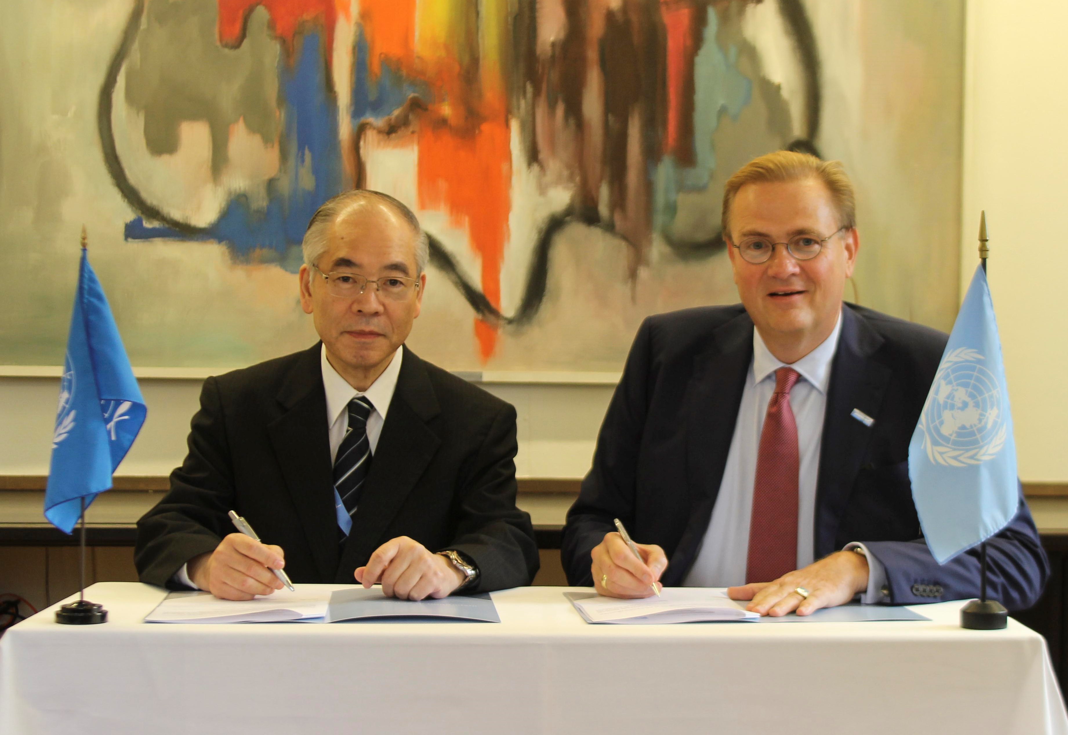 During its first Partnerships Forum, the United Nations Volunteers (UNV) programme signed a new cost sharing agreement with Kwansei Gakuin University (KGU) of Japan. In this new agreement, Kwansei Gakuin University pledges to support UNV's activities in Japan. This Agreement was signed by Professor Takahiro Shinyo, the Vice President of KGU.