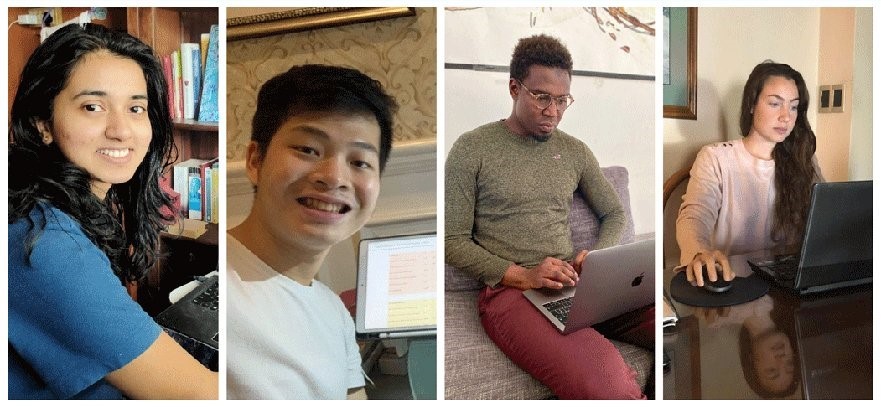 Valentina Fernandez, Edward Yo, Mamadou Ndao and Ashlyn Saveej, Online Volunteers fighting COVID-19 from their homes worldwide. UNV, 2020