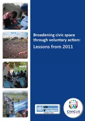 Voluntary citizen participation is an essential part of civil society, which in turn is a key contributor to sustainable development, human rights, good governance and social justice. 2011, the tenth anniversary of the International Year of Volunteers (IYV+10), saw an upsurge of such action in different forms in many countries around the world.<br /><br />Looking back on 2011, CIVICUS: World Alliance for Citizen Participation and the United Nations Volunteers (UNV) programme have combined to analyze contemporary trends in voluntary action and make recommendations for policy-makers, civil society, and volunteer involving organizations, in our new publication, Broadening Civic Space through Voluntary Action.